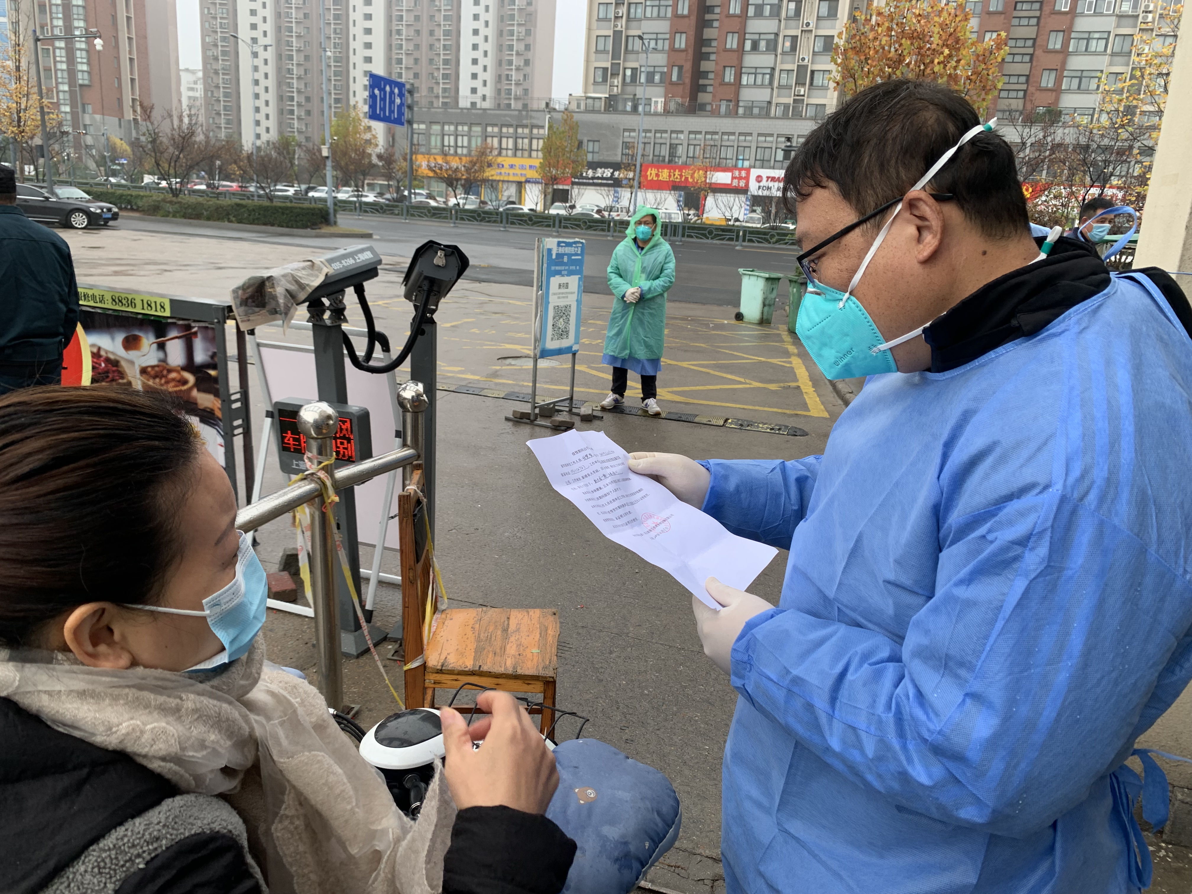 在凌州社區(qū)新月園小區(qū),供電工程分公司志愿者們對進(jìn)出小區(qū)人員測量體溫,查驗健康碼、核酸報告,核對人員身份信息、外出證明、核酸檢測信息錄入等工作。