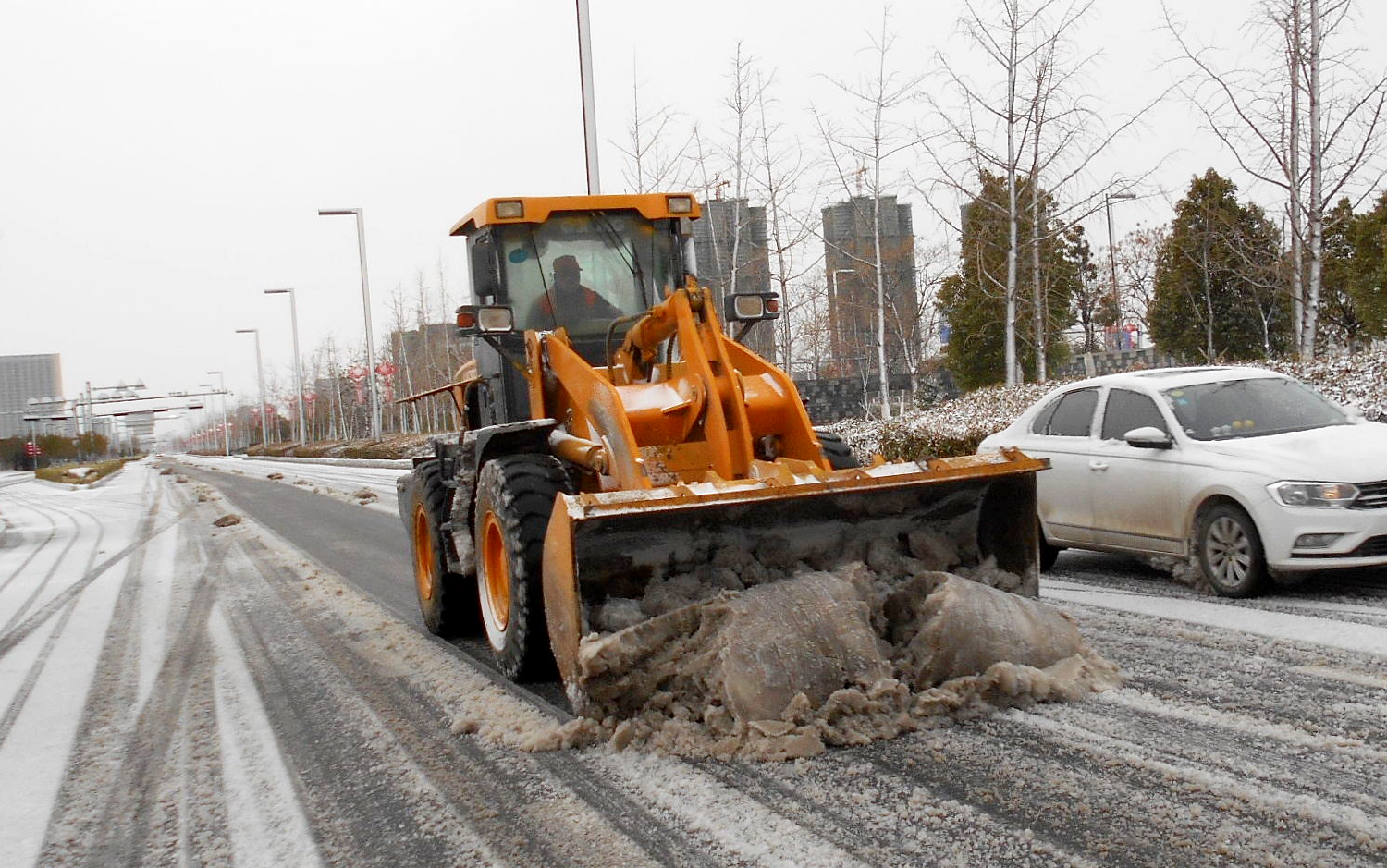 在開發區、徐圩新區、灌云臨港產業區的各個區域,到處都是集團綠化保潔人的最美身影,他們在各單位黨員先鋒隊、青年突擊隊的配合下,帶上融雪劑和作業工具,發揚不怕艱苦、連續作戰、敢打敢拼的工投精神,對交通要道、橋梁、彎道等重點防滑路段進行清雪防凍處理,鋪灑融雪劑40余噸,為疫情防控期間車輛行人出行安全增添一份保障。