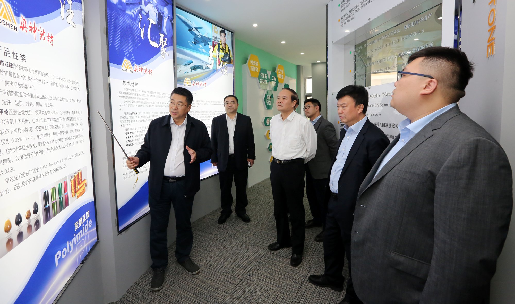10月24日下午,中信產(chǎn)業(yè)投資基金管理有限公司總裁田宇一行在連云港市副市長(zhǎng)尹哲強(qiáng)的陪同下在集團(tuán)奧神新材料、氨綸公司考察調(diào)研,并與集團(tuán)公司董事長(zhǎng)、黨委書記楊龍就雙方合作事宜進(jìn)行了深入洽談、全面對(duì)接。