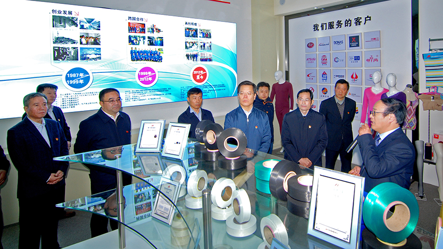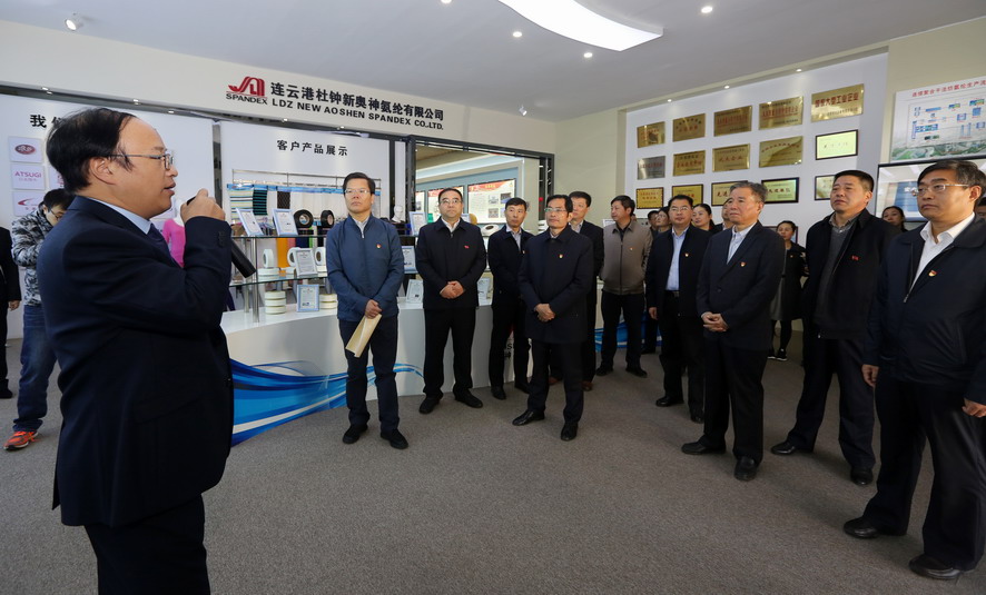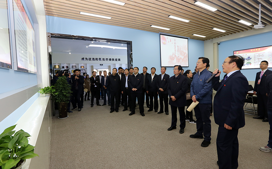 11月9日,市委組織部副部長、市黨建辦主任王玉祥,市國資委黨組書記、主任徐丙超帶隊(duì)的全市國企黨建工作現(xiàn)場觀摩活動(dòng)走進(jìn)氨綸公司。市屬各國企黨委副書記、黨群部門負(fù)責(zé)人,部分省屬企業(yè)黨建工作分管負(fù)責(zé)人等參加觀摩活動(dòng)。集團(tuán)公司黨委書記、董事長楊龍,黨委副書記戴鴻鳴陪同觀摩。
