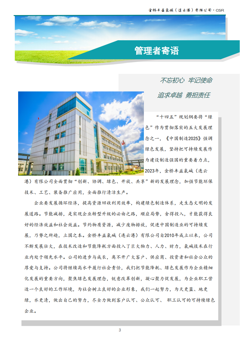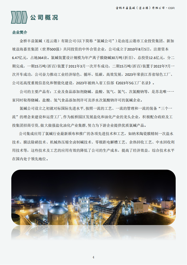 金橋豐益氯堿(連云港)有限公司2023年可持續(xù)發(fā)展報(bào)告公示