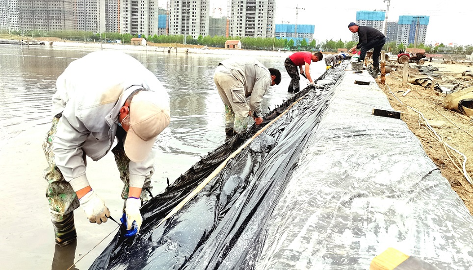 本次技能比武共有24名一線職工報(bào)名參加,分為4組,每組6人,以小組為單位,同規(guī)模、同長度、同條件格堰,在規(guī)定時(shí)間內(nèi)完成塑布安裝。