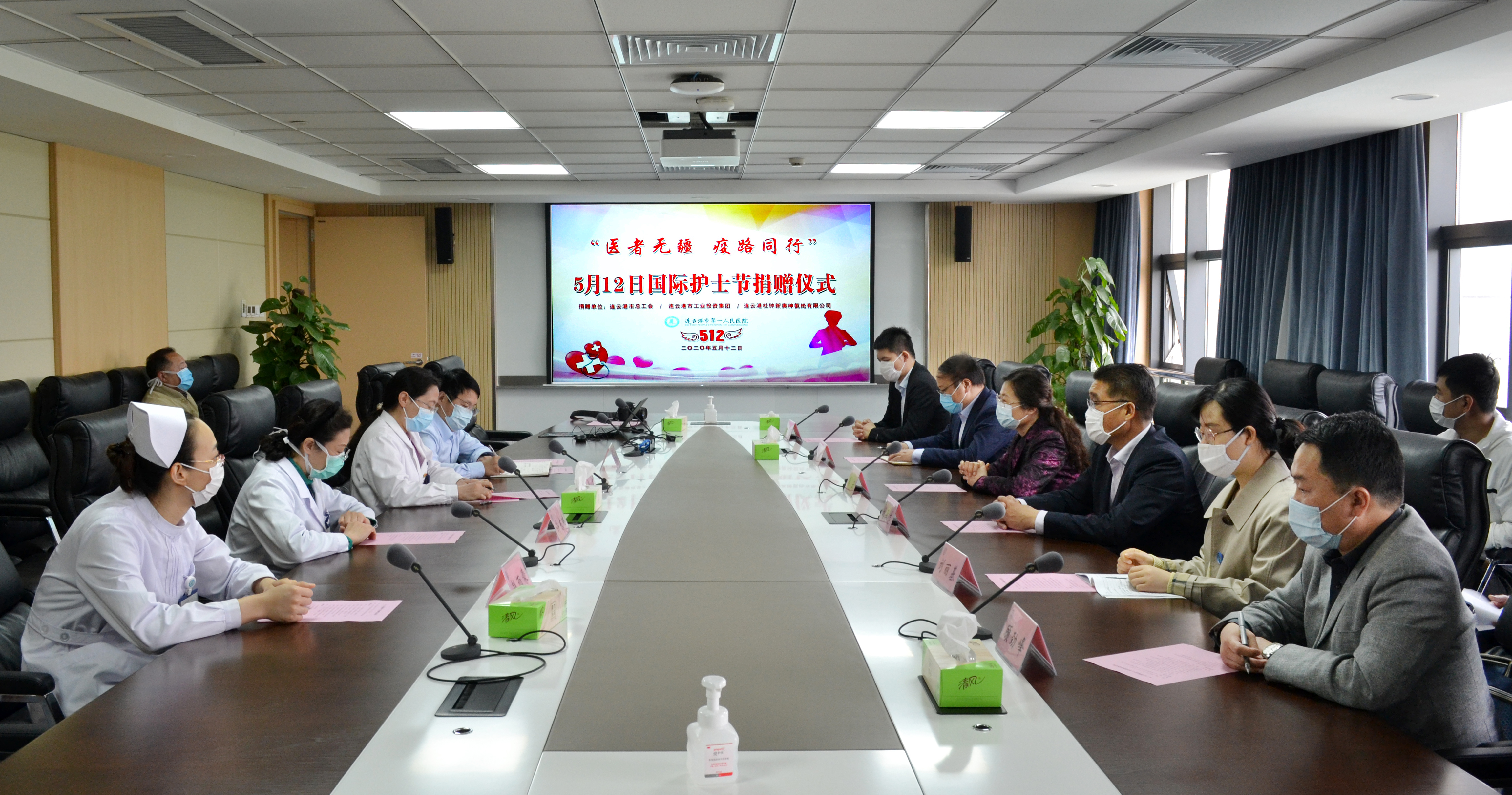 5月12日國際護(hù)士節(jié),連云港杜鐘氨綸有限公司來到連云港市第一人民醫(yī)院開展愛心捐贈活動,共計捐贈功能性絲襪15000雙。市總工會副主席秦云、集團工會主席劉承志、市一醫(yī)工會主席胡蓉,副院長李明星,氨綸公司總經(jīng)理張斌出席捐贈儀式。