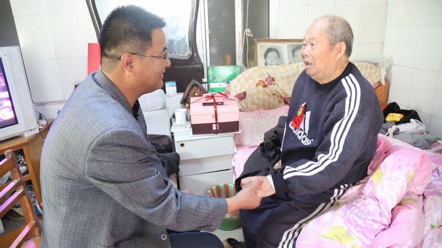 在省勞模李成永家中,93歲高齡的老人家熱情地拉著工作人員的手,激動地說:“感謝組織的關懷,企業一直沒有忘記我們這些老工人呀!”工作人員囑咐他要保重身體,安享晚年。