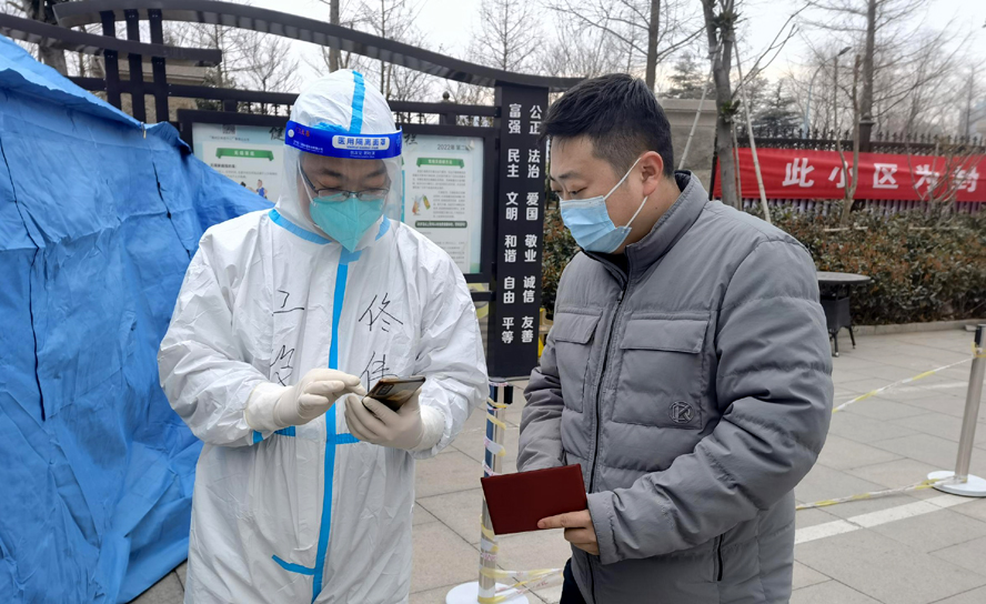 平時她只是居民小區(qū)里普通的一員,過著平凡的生活。但在這場沒有硝煙的抗“疫”之戰(zhàn)中,作為發(fā)展對象,她勇敢的站了出來,成為了疫情中的英勇戰(zhàn)士。她就是商務(wù)部員工王曦。在做核酸檢測信息采集時,王曦需要與醫(yī)護(hù)人員一樣,穿上厚重的防護(hù)服,裝備齊全,完善自身防護(hù),然后對每位待檢人員進(jìn)行手機(jī)掃描身份證登記。這項(xiàng)工作聽起來簡單,可干起來就不是那么容易了,注意力需要高度集中,掃描身份證后要進(jìn)行信息核對,有缺失的信息需要補(bǔ)錄,戴著手套的手戳起小小的手機(jī)屏幕根本就不是那么利索,需要反復(fù)多次才能完成采集。為了避免上廁所耽誤工作,她忍住口干不喝水,保持掃碼姿勢基本不變,一天下來脫下防護(hù)服,里面的衣服早已被汗水濕透。當(dāng)家人心疼的問她累不累的時候,她說:“我只是做了力所能及的事情,與其宅在家里,不如參加志愿服務(wù),在這特殊時期盡自己的綿薄之力。”