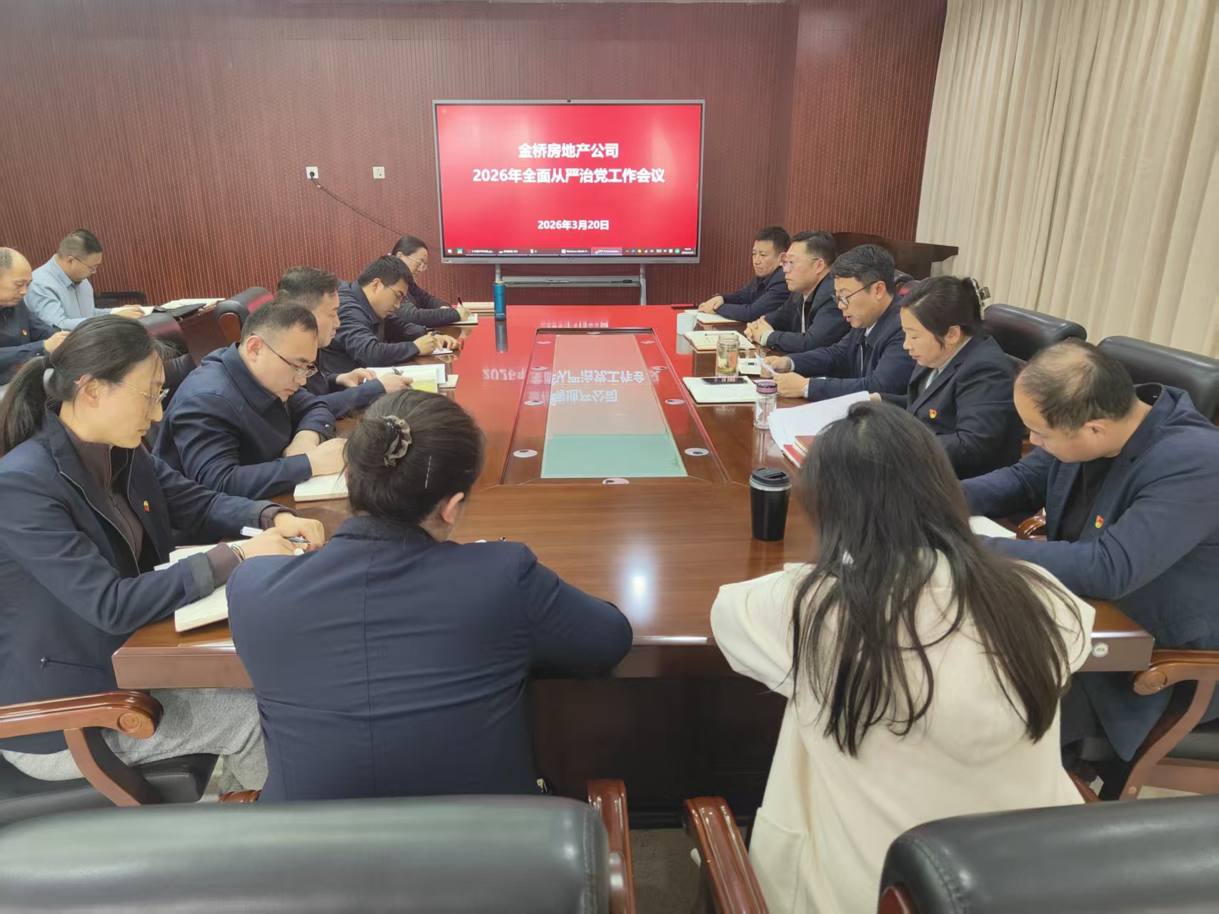 3月20日,金橋房地產公司召開2026年全面從嚴治黨工作會議,公司黨總支書記、董事長、總經理湯占國作黨總支工作報告,部署2026年全面從嚴治黨重點工作任務。公司全體黨員參加會議。湯占國強調,2026年是“十五五”規劃開局之年,也是公司扭虧為盈、高質前行的關鍵之年,黨建工作的指導思想是:深入學習貫徹習近平新時代中國特色社會主義思想,緊緊圍繞新時代黨的建設總要求和新時代黨的組織路線,開展樹立和踐行正確政績觀學習教育,以黨建工作與生產經營深度融合為核心,以推進作風建設常態化長效化為保障,緊扣“轉型、扭虧”工作主線,聚焦“招商引資擴增量、園區服務提質量、資產盤活挖潛量”三大任務,精準實施基層黨建“書記項目”,不斷提升黨組織政治功能和組織功能。具體要抓好五項重點工作:一是強化思想理論武裝,持續凝心鑄魂固本,筑牢思想與意識形態雙重防線;二是夯實基層組織基礎,推動黨建提質增效,以規范管理與品牌創建激活組織活力;三是從嚴建強干部隊伍,激發干事創業活力,完善選育管用體系與考核激勵機制;四是持續深化正風肅紀,一體推進“三不腐”,壓實主體責任并強化監督執紀問責;五是堅守初心服務職工,凝聚企業發展合力,以民主管理、惠民舉措與...