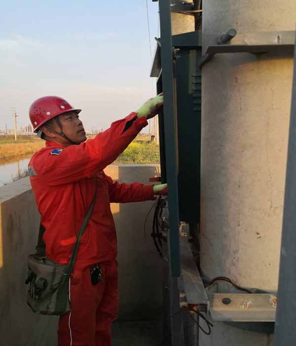 他,工作細(xì)致業(yè)務(wù)硬。多年來,他以所為家,幾乎沒有節(jié)假日和周末。不管是嚴(yán)寒酷暑,還是天氣惡劣,只要一有任務(wù),總是搶在前面,毫無怨言,風(fēng)雨無阻。一次,已經(jīng)在家休息的他接到所里搶修電話,立馬驅(qū)車前往現(xiàn)場(chǎng)。經(jīng)查看,勝利圩一個(gè)臺(tái)變的配電箱和變壓器起火,該臺(tái)變控制著附件1000畝魚塘和20戶居民的用電,如維修不及時(shí),將造成魚塘缺氧,魚苗死亡,帶來巨大經(jīng)濟(jì)損失。為了將損失降到最低,他帶領(lǐng)班組成員,克服天氣熱,蚊蟲多等困難,一直奮戰(zhàn)到凌晨3點(diǎn),終于更換完成損壞設(shè)備。