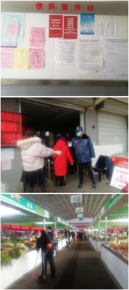 強化市場內(nèi)部管控。為進一步避免人群大規(guī)模聚集,調(diào)整市場開放、關(guān)閉時間,緩解人流量,勸導(dǎo)群眾不信謠、不傳謠,無需恐慌搶購。督促農(nóng)貿(mào)市場100多戶經(jīng)營戶每天提前全部做好物資的擺放,所有進出市場人員保留1個進出口通道依次進出,并指派專人在入口負責(zé)體溫檢測;對進入市場的等各類車輛實行指定區(qū)域有序停放,確保市場內(nèi)無占道現(xiàn)象。