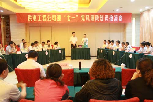 6月5日上午,公司“迎七一,頌黨恩,促勤廉”黨風(fēng)廉政知識(shí)搶答賽在淮鹽大酒店金橋廳隆重舉行。來(lái)自公司基層單位及機(jī)關(guān)的七個(gè)代表隊(duì)參加了比賽。經(jīng)過必答題、搶答題、風(fēng)險(xiǎn)題等7輪激烈緊張的角逐,最終,機(jī)關(guān)代表隊(duì)、臺(tái)北供電所代表隊(duì)、農(nóng)場(chǎng)市場(chǎng)聯(lián)隊(duì)分獲前三名。公司機(jī)關(guān)及直屬單位全體人員觀看了比賽。