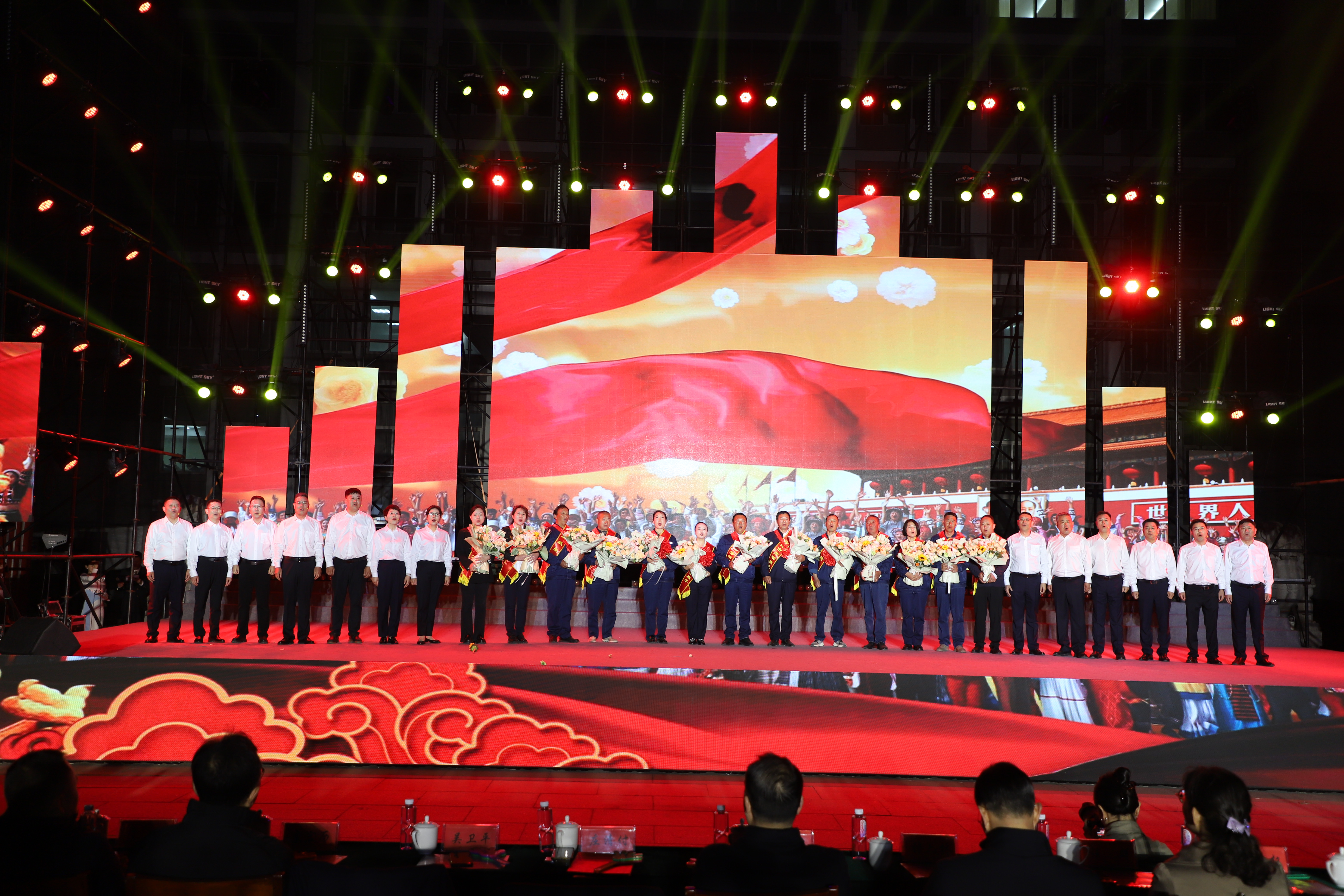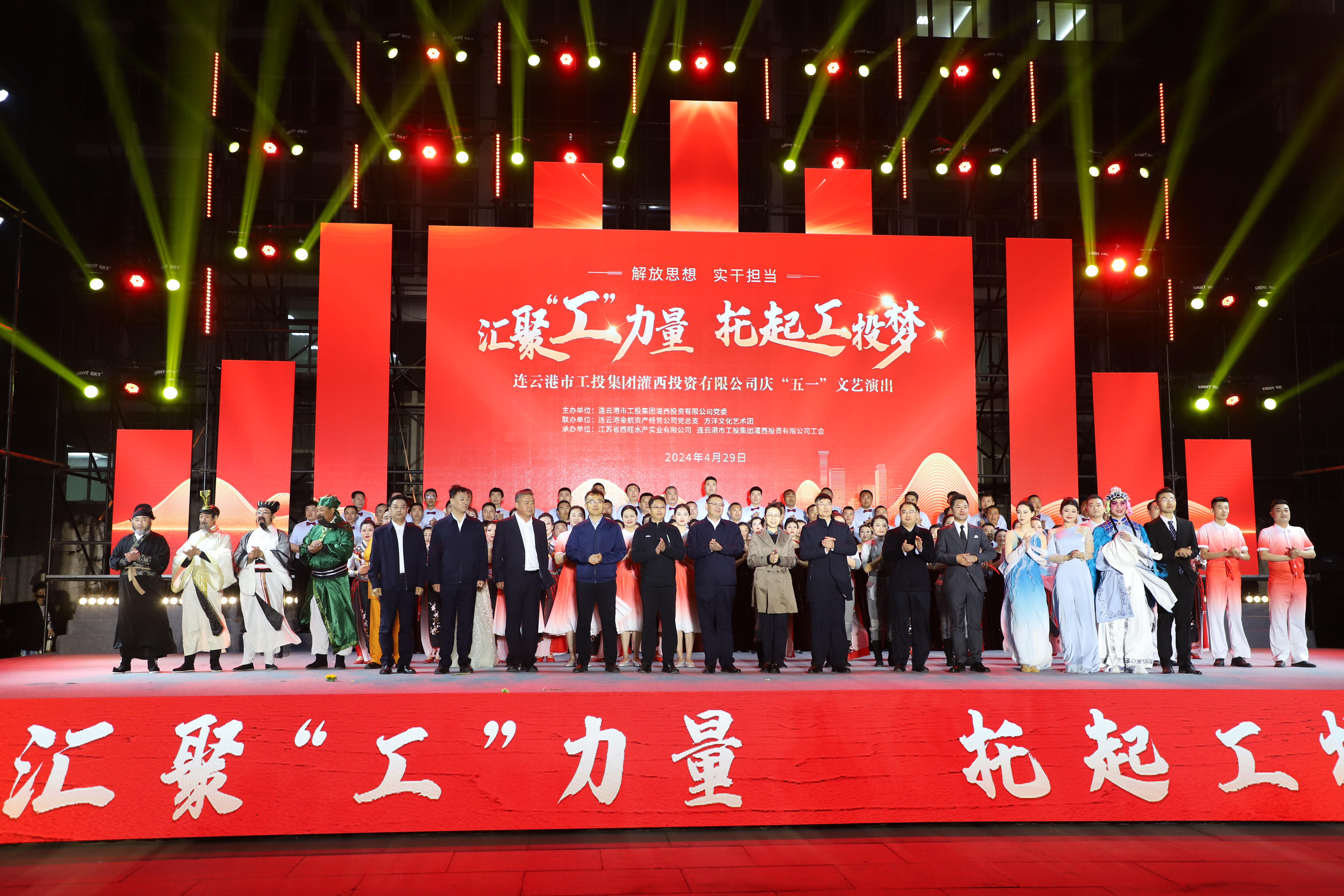 429日晚,灌西投資公司《匯聚“工”力量,托起工投夢》慶“五一”文藝演出在機關大樓前廣場舉行。本次活動由灌西投資公司黨委主辦,連云港金航資產經營公司黨總支、方洋文化藝術團聯辦,旨在通過藝術的形式,營造崇尚勞模、學習先進、尊重勞動的良好氛圍,豐富公司員工的文化生活,激發干事創業熱情。集團公司領導張六林、戴鴻鳴、汪群及部分部門負責人,灌西、金航資產經營公司領導班子成員出席演出活動,縣臨港產業區管委會、華能灌云清潔能源發電責任有限公司、徐圩新區方洋集團等有關領導受邀觀看演出。