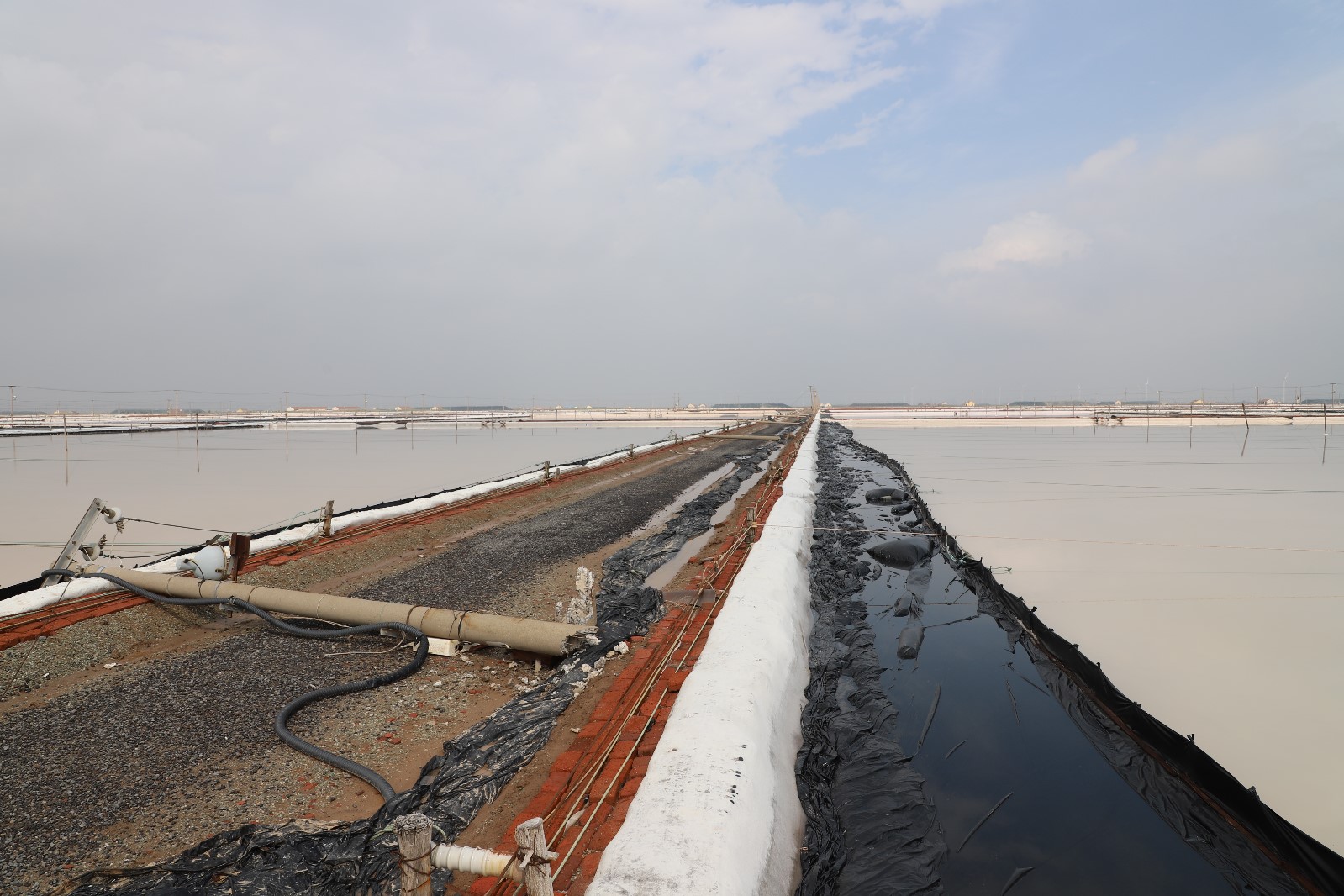同心支援有溫度。受當晚突發的狂風暴雨強對流天氣,導致日曬制鹽公司38根電線桿被暴風折斷、60塊結晶池塑布受損,20塊塑布需要更換,130余間值班房及機房屋頂瓦面損壞,給鹽業生產造成嚴重安全隱患。6月14日凌晨5點,來自于該公司各條戰線近180人,支援搶險搶時搶工,進行結晶池塑布安裝、廢棄物清理等工作;來自灌西供電所、徐南供電所的兄弟單位14名專業電工,第一時間到生產現場進行清除電力故障、更換電線桿等電力工程作業。充分展現我們工投人在困難面前同力協契、踔厲奮發的拼搏精神,為企業高質量的安全發展奠定堅實基礎。