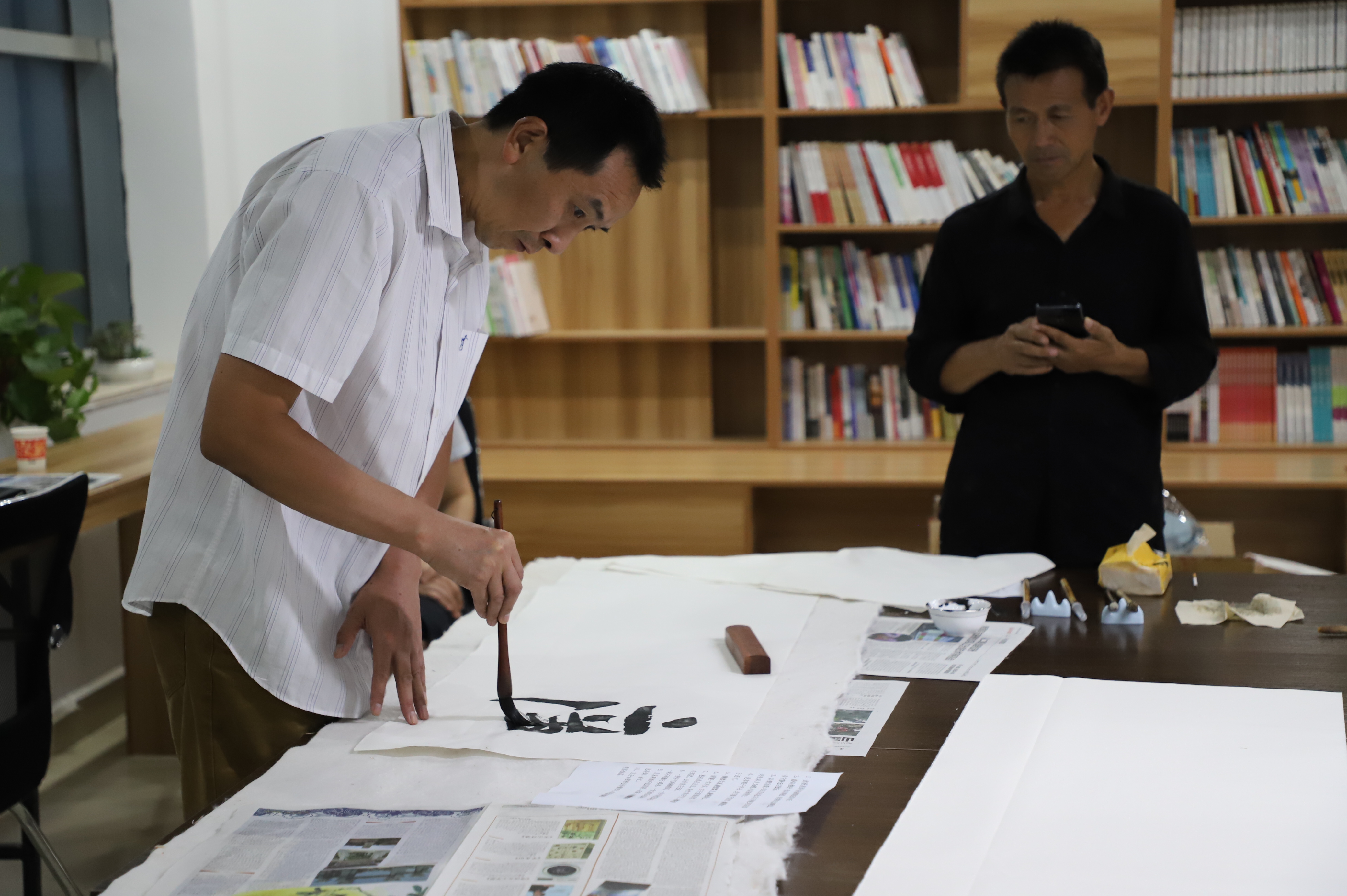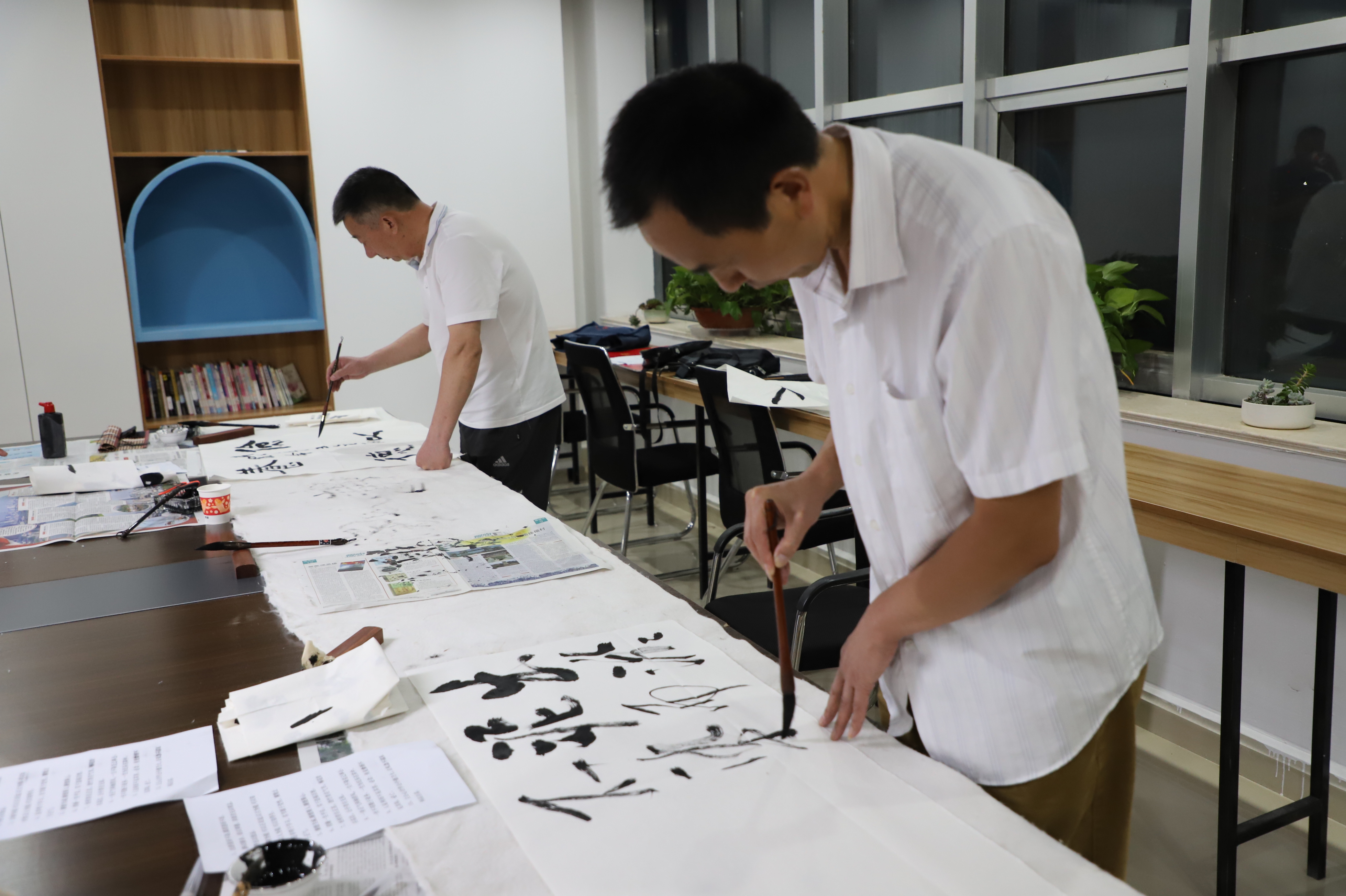 書畫筆會邀請縣書畫家協(xié)會的6名成員到場潑墨揮毫,以圍繞“迎國慶慶祝建黨百年”為主題,書寫愛黨華章,歌頌黨的百年光輝歷程,著力引導(dǎo)黨員干部“守初心、踐使命”。