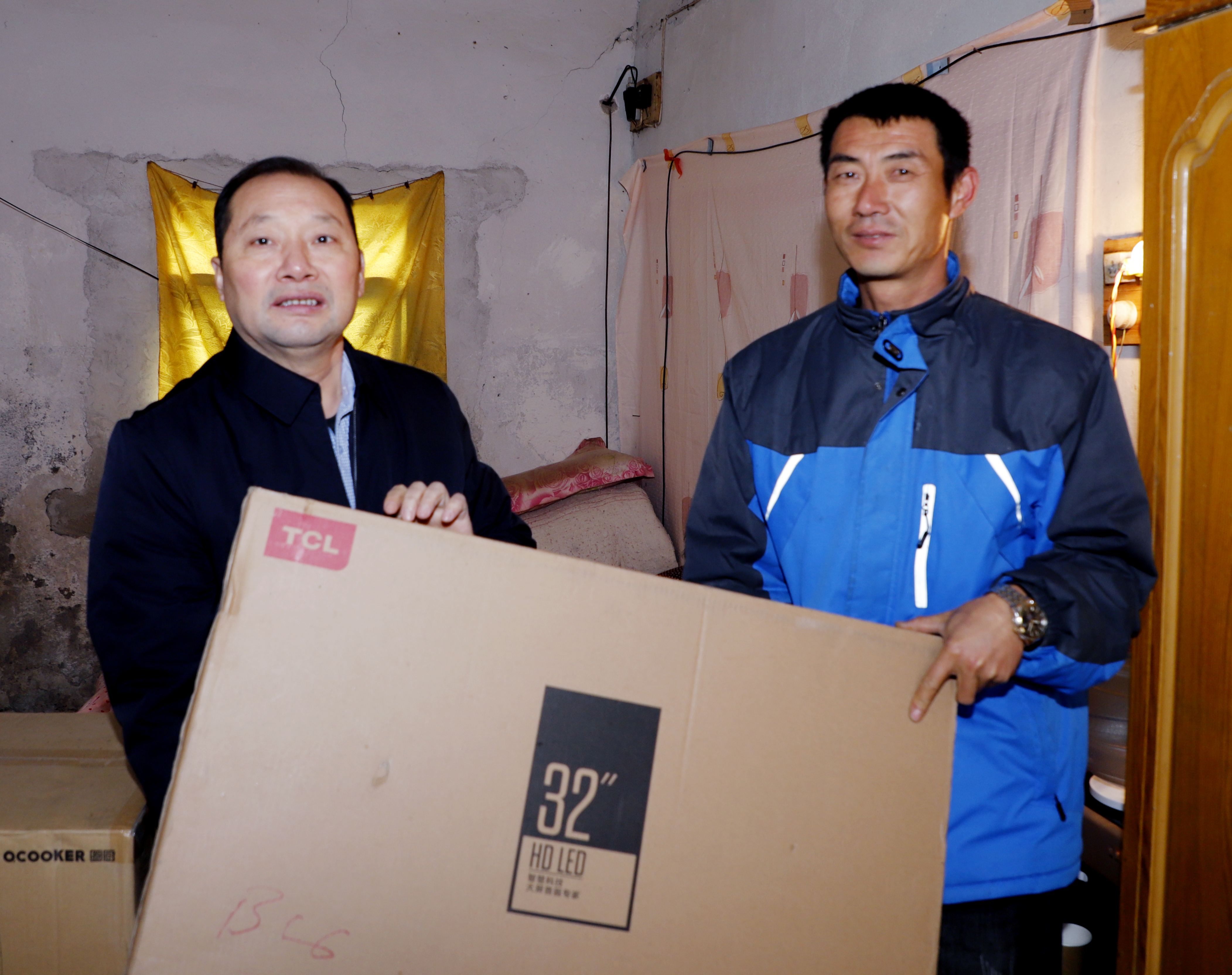 1124日,灌西投資公司黨委書記、董事長、總經理李國文,黨委副書記、工會主席王宏為灌西中二圩社區貧困家庭送去暖冬愛心“家電包”。