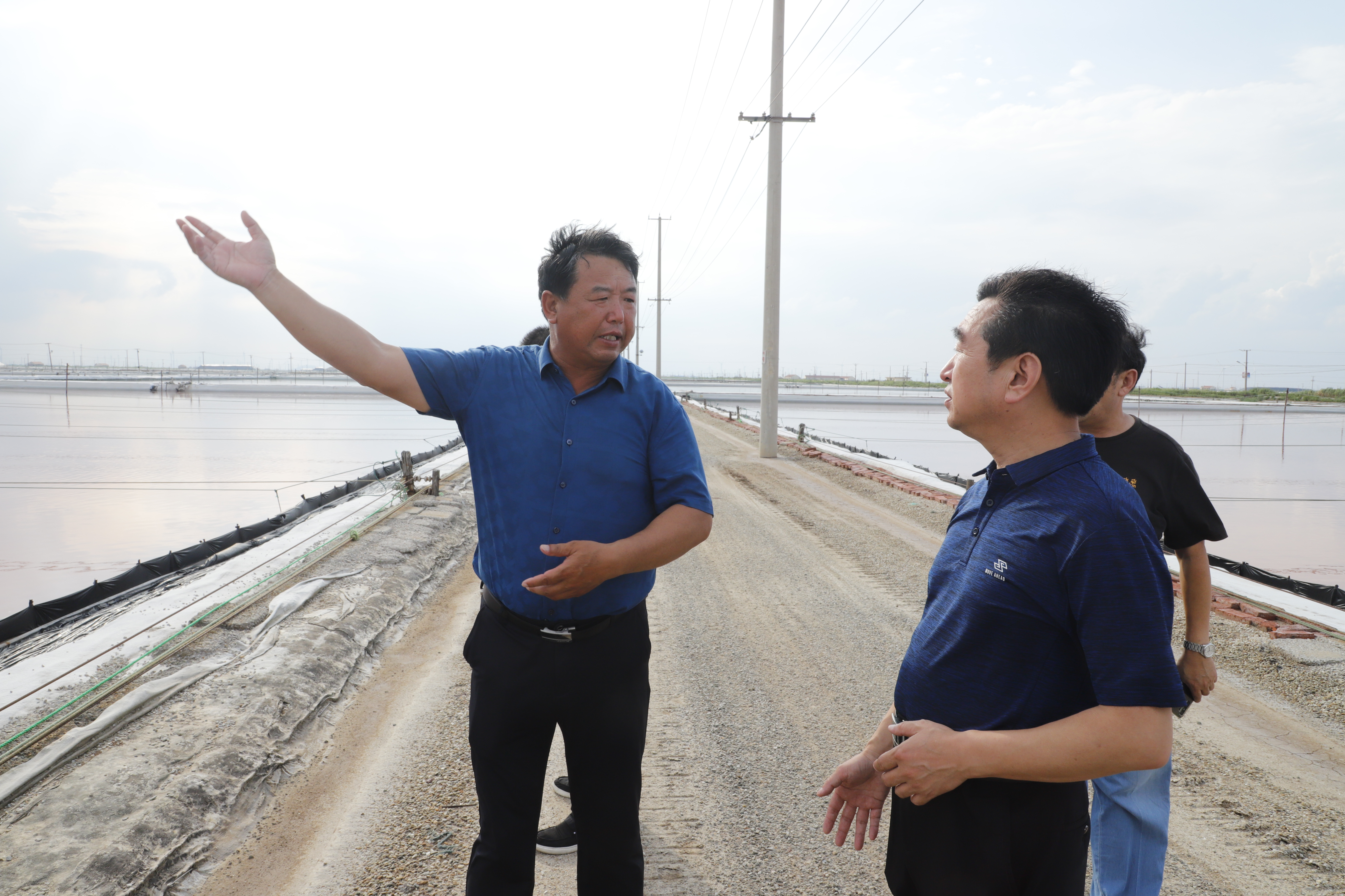 在新河分公司8班生產灘頭,省勞模安樹林向王盡美研究會一行講解了制鹽過程,以及基層班組黨小組活動開展情況。日曬制鹽新河制鹽分公司8班,這是一個建在一線灘頭的基層黨組織,是一個特別能吃苦的團隊,在十分簡陋的環境下,活學活用,將黨建活動與鹽業生產、勞模創新融為一體,充分發揮了基層黨組織的戰斗堡壘和先鋒模范作用,所在班組被市總工會授予勞模創新班組,班組長祝星星獲連云港市勞動模范稱號。