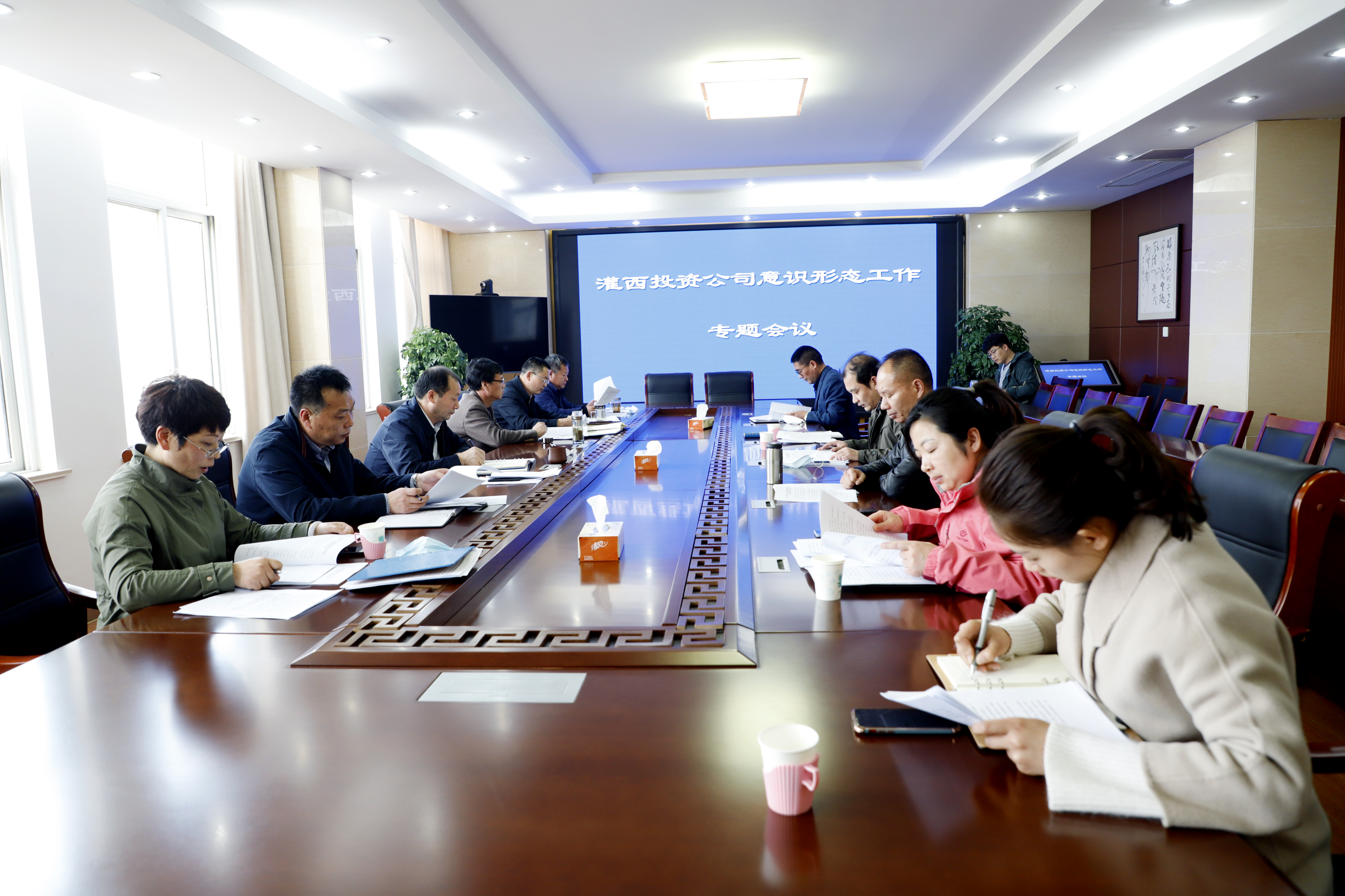 4月21日,灌西公司黨委在機關三樓會議室召開意識形態工作專題會議。黨委班子全體成員、黨建部、紀委、黨政辦公室、人力資源、工會、團委等黨群部門負責人參加會議。