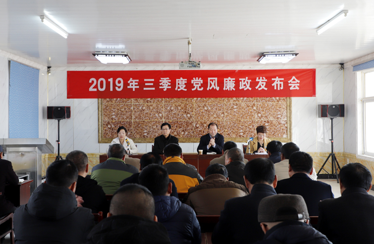 會上,發(fā)布了2019年三季度黨風廉政建設情況,通報了公司在三季度大宗物資采購、海淡水養(yǎng)殖池塘承包費收繳、工程項目建設、業(yè)務招待費用使用、人力資源管理、民生實事等方面的情況。