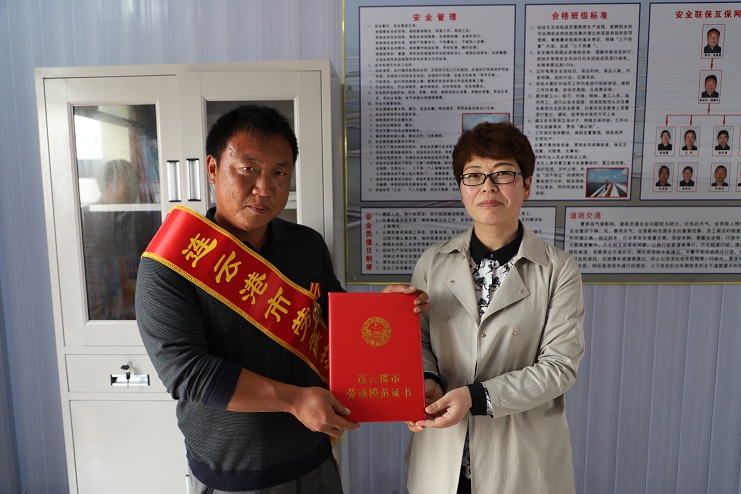 公司董事長李國文為連云港市勞模祝星星綬帶佩章