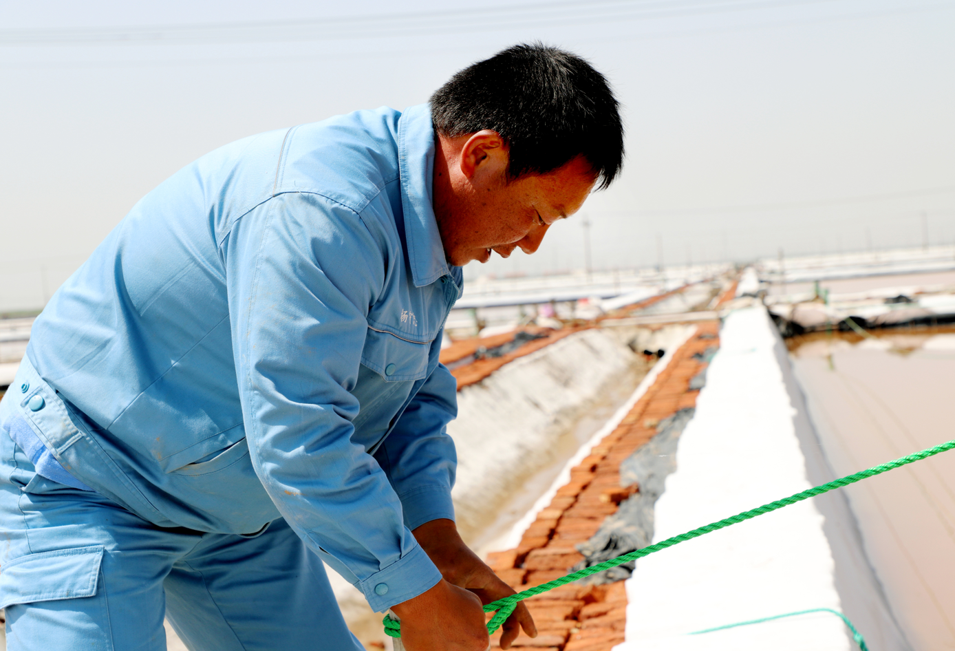 進入二季度以來,新河制鹽分公司積極響應投資公司開展的“拼搏二季度,實現雙過半”競賽活動,鼓足了干勁,掀起大干二季度熱潮。5月23日,在新河制鹽公司的七班,幾名員工正在換裝新塑料布,只見有的釘壓條,有的扣樁繩,還有的在插塑料布的后墻,搶在雨水天氣之前進行鹽池塑料布的跟換,鹽池堰的修整,確保鹽池鹵水不跑漏,雨天鹽池不進水。
