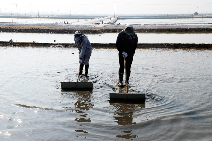 強化鹵水提制。密切關注天氣變化,緊緊抓住小滿前后的有利天時,科學安排走水線路,提高蒸發量的利用率。通過四輪壓格機器反復壓制整治滲漏池板,減少池板的鹵水滲漏。強化“三雨”操作,嚴格的塑池管理,加強塑布更新和修補,嚴控跑冒滴漏。提高公司灘地綜合利用率,充分利用廩基、排淡溝道等有效面積,利用高濃度淋板水,小鹽化鹵等窮制鹵措施,提制飽和鹵水,提升制鹵量。大力推廣應用先進的制鹵工藝,保障產出高質的海水鹵。