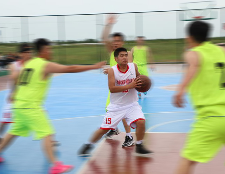 神特新材料公司代表隊不敵氯堿公司代表隊。神特隊整場被氯堿隊壓著打,但神特隊的15號孫輝整場以一個三分球、四個籃板、兩次助攻并兩次上演三夾一的好戲,成為全場焦點,氯堿隊以9號張斌和11號韓長齊為核心,連連打出小高潮,第一節11號韓長齊拿下11分三個籃板,整場貢獻23分,神特隊還是身高上沒有優勢,結果以32:47敗給氯堿隊。