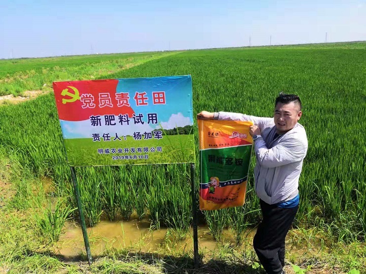 圖為路北分公司黨員楊加軍責任田,其負責管理的6畝新肥料試種水稻,目前以進入孕穗期。(明威楊加軍)