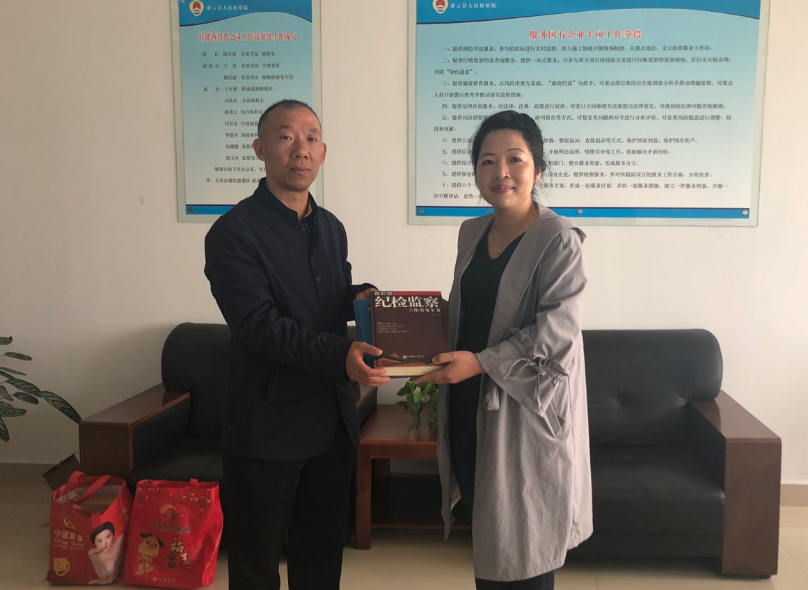 10月17日,灌云縣檢察院監察室主任范玉兵來我公司調研工作,進一步加強檢察院與企業溝通和了解,促進“檢企共建”活動深入開展。