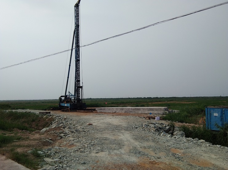 坐落在西旺水產(chǎn)公司農(nóng)田區(qū)域內(nèi)的其中的8個(gè)風(fēng)力發(fā)電機(jī)建設(shè)項(xiàng)目,繼續(xù)協(xié)調(diào)、征地、便道鋪建完工后,目前進(jìn)入樁基施工階段。圖為樁基施工現(xiàn)場(chǎng)(西旺宣)
