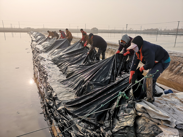 進(jìn)入5月下旬,天氣時(shí)陰時(shí)晴,新河制鹽分公司積極組織勞動(dòng)力,要求各班組做到扒鹽和塑布安裝相結(jié)合、相推進(jìn),截至當(dāng)前,180塊計(jì)5400公畝塑布已經(jīng)安裝完畢,此項(xiàng)工作的完成對(duì)降低鹵耗,減少跑冒滴漏起著決定性作用。(程龍)