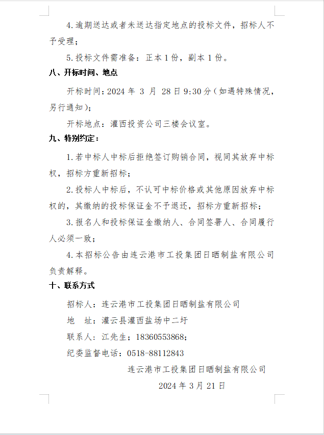 連云港市工投集團日曬制鹽有限公司2024年度勞保用品采購項目公開招標公告