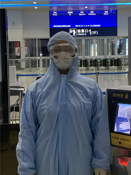 一天晚上,進(jìn)站口急匆匆來了一個女孩拖著3個大箱子,就差幾分鐘列車就要開了,女孩急著說,完了完了,趕不上火車了,朱詠梅協(xié)助醫(yī)護(hù)人員幫她測完體溫,顯示正常,朱詠梅拿起她的行李,幫助她進(jìn)行箱包檢查,檢票、上、下電梯……女孩一邊跑一邊和她說,她是去英國上學(xué)的,因這次疫情的影響,已經(jīng)3次被改簽了,如這次趕不上列車,可能再也沒有機會去上學(xué)了;朱詠梅在列車開動前把她送上了車,女孩對她連聲感謝……