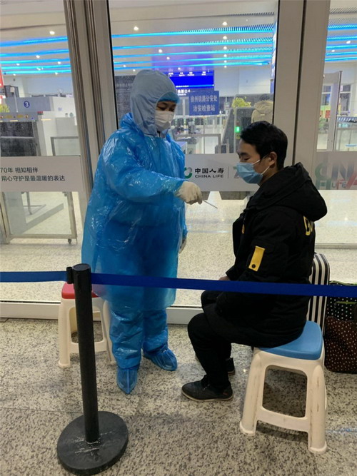 朱詠梅是來自江蘇金橋制鹽有限公司的普通員工,在連云港市志愿者協(xié)會的統(tǒng)一安排下,每天到連云港市高鐵站測溫點配合醫(yī)務(wù)人員為乘客檢測體溫,并協(xié)助醫(yī)務(wù)人員對體溫出現(xiàn)異常的乘客進(jìn)行復(fù)查。每天的服務(wù)都到深夜零點,等到送走最后一位乘客才回家。
