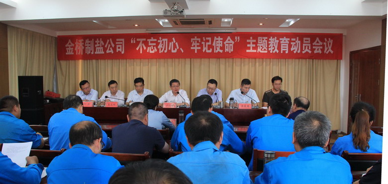9月24日,金橋制鹽公司召開“不忘初心、牢記使命”主題教育動員會議,黨委書記、董事長、金橋制鹽公司主題教育領導小組組長朱桂玉作動員講話,要求全公司上下緊密團結在以習近平同志為核心的黨中央周圍,以高度的政治責任感、良好的精神狀態、求真務實的作風,深入扎實地開展好主題教育,努力實現理論學習有收獲、思想政治受洗禮、干事創業敢擔當、為民服務解難題、清正廉潔作表率的具體目標,以優異成績慶祝新中國成立70 周年。集團黨委主題教育第二指導組組長、集團公司工會副主席盧同根,副組長、集團黨群工作部副部長趙世聰到會指導。公司黨委副書記、紀委書記、工會主席李昊睿主持會議。副總經理惠志明、曹開明、田磊參加會議。