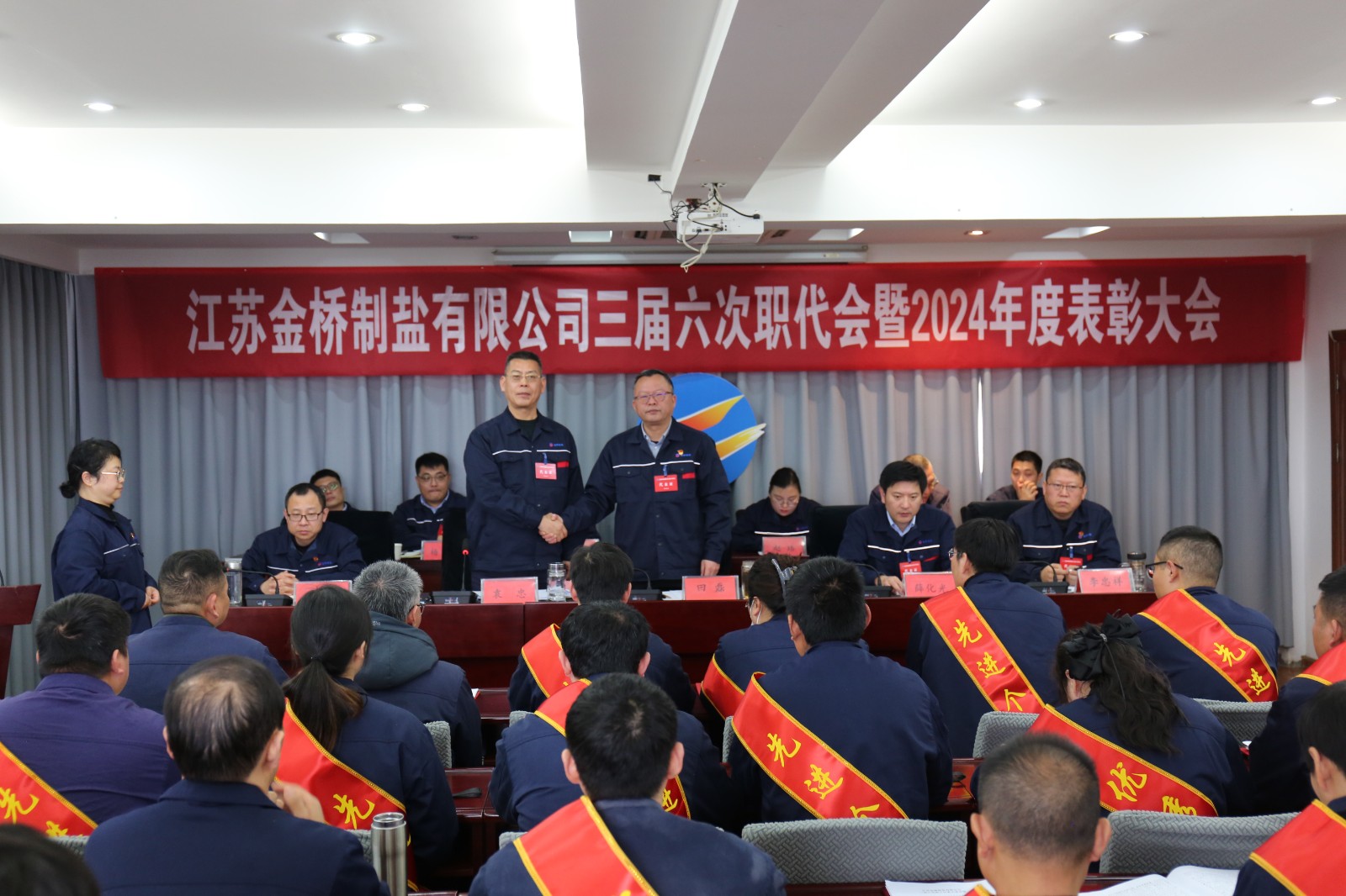 1月23日,金橋制鹽公司隆重召開三屆六次職代會暨2024年度表彰大會。來自公司各條戰(zhàn)線的45名代表忠實履行職責(zé),積極獻(xiàn)計獻(xiàn)策,共商發(fā)展大計。公司黨委書記、董事長田磊作講話。公司常務(wù)副總經(jīng)理薛化光作《工作報告》。公司黨委副書記、紀(jì)委書記、工會主席袁忠主持大會。