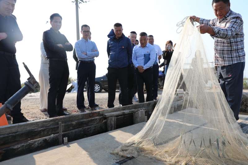 一把旋網撒進池塘,捕撈起肥美的魚蝦。在三洋分場生態養殖示范崗,生態養殖帶頭人姜偉介紹當前養殖情況,觀摩組通過看水產品、聽匯報,深入了解生態養殖示范崗的創建成效。