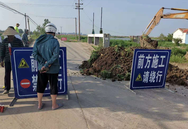 此路段是青口鹽場場內主要道路,由于持續(xù)高溫,橋面拱起、斷裂。到達現(xiàn)場后,公司立即組織人員勘察橋梁情況,封閉了現(xiàn)場交通,及時在公司以及社區(qū)QQ群、微信群發(fā)送繞道通行信息,并設置警示牌,確保夜間交通安全。