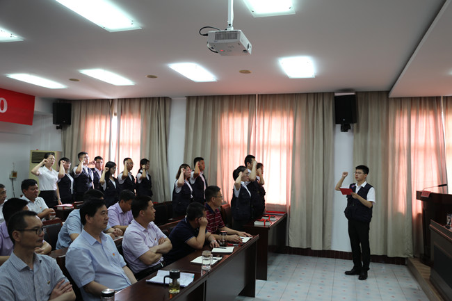 集團(tuán)人力資源部部長(zhǎng)劉曉兵同志啟動(dòng)“藍(lán)馬甲”頒授儀式,為學(xué)員頒授藍(lán)馬甲。 公司人力資源部部長(zhǎng)許中業(yè)同志宣讀特訓(xùn)營(yíng)實(shí)施方案,特訓(xùn)營(yíng)班長(zhǎng)仲偉彬帶領(lǐng)所有成員進(jìn)行“藍(lán)馬甲”宣誓,學(xué)員代表黃阿鳳作表態(tài)發(fā)言。