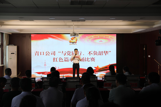 為了慶祝建黨99周年,引導(dǎo)和激勵(lì)廣大黨員干部圍繞 “三年攀高”行動(dòng)計(jì)劃,為弘揚(yáng)“新青口精神”、開啟青口發(fā)展新征程貢獻(xiàn)力量。6月23日下午,青口公司黨委隆重舉行“與黨同行、不負(fù)韶華”紅色篇章朗誦比賽。公司領(lǐng)導(dǎo)班子、機(jī)關(guān)全體管理人員及各單位黨政工負(fù)責(zé)人參加活動(dòng)。