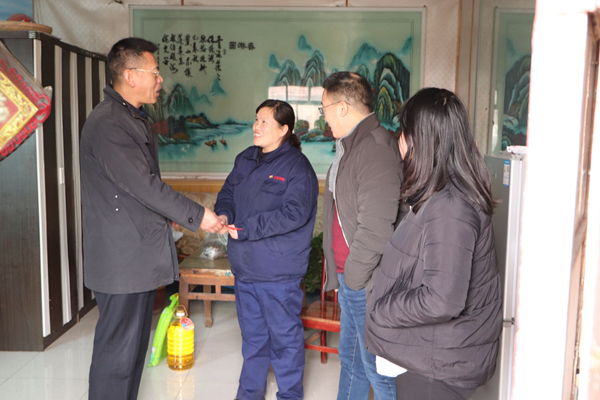121日,公司總經理韓立新,工會主席袁忠,總經理助理蘇領高分赴困難職工家庭,送去公司關懷和新春祝福,送上暖心慰問品和慰問金。