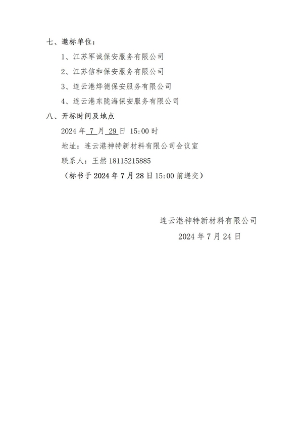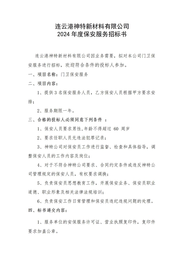 神特公司2024年保安服務邀請招標公告