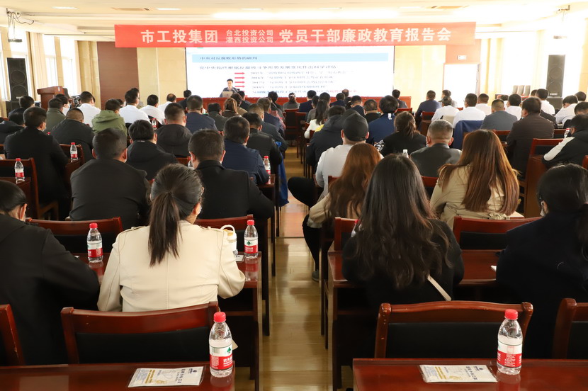 為認真貫徹落實黨的二十大精神,深入開展廉政警示教育,進一步增強黨員干部廉潔自律意識,10月28日上午,臺北、灌西投資公司聯合召開廉政教育報告會。報告會由灌西投資公司黨委書記、董事長李國文主持,兩家投資公司領導班子及管理人員近百人聆聽了報告。集團紀委書記汪群、集團紀委副書記王建松出席會議。