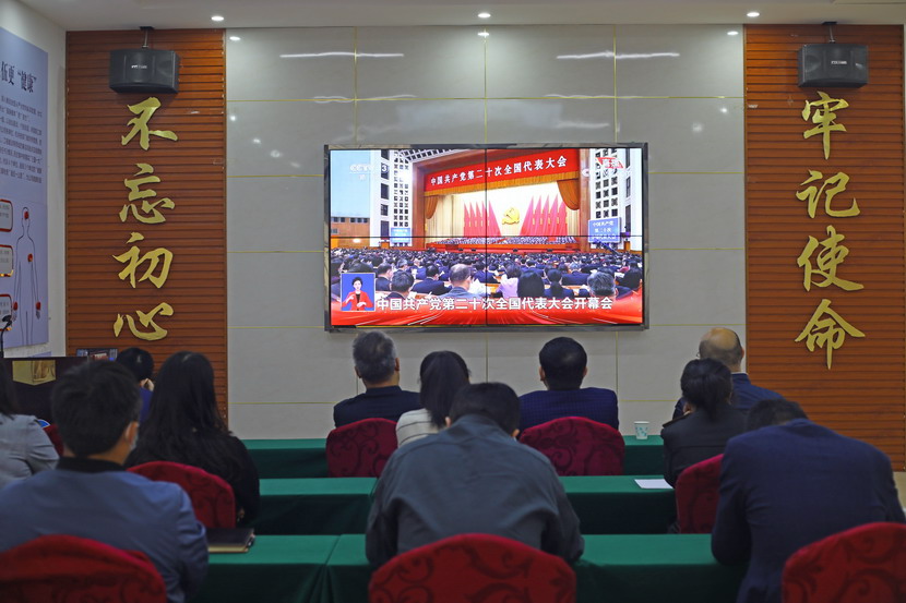? ? ? ??臺北投資公司廣大黨員干部群眾早早端坐在屏幕前,懷著激動的心情,收聽收看黨的二十大開幕會,認真聆聽習近平總書記所作的報告。公司領導王德志、楊善革、張海寧、卞霄以及各部門負責人在機關廉政會堂集中收看,各基層單位廣大黨員或在支部,或通過視頻會議,或在工作崗位休息間隙,收聽收看開幕會盛況。