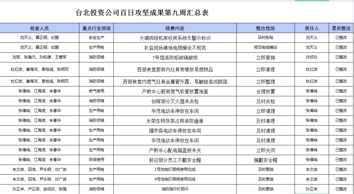 臺北投資公司百日攻堅成果第九周匯總表