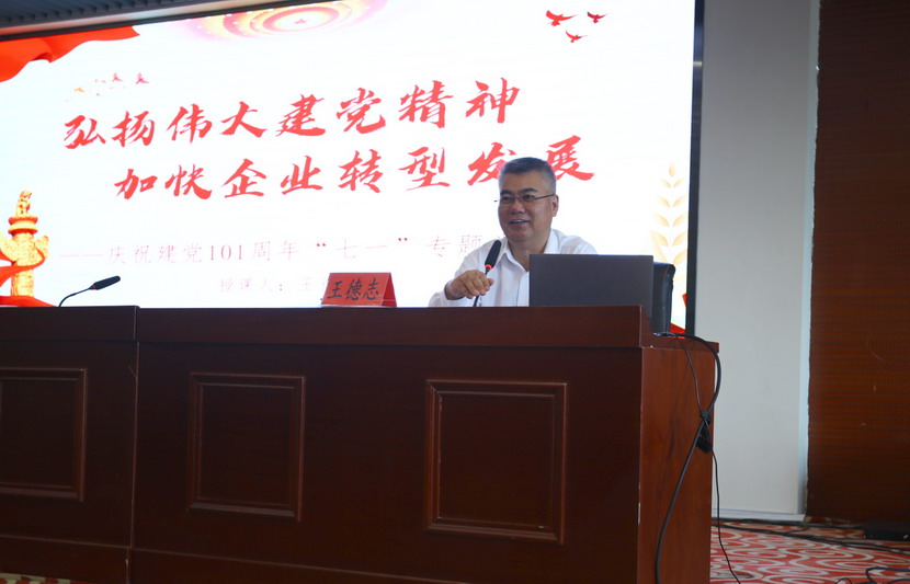 公司黨委書記、董事長、總經理王德志為與會黨員上“七·一”專題黨課。他生動地闡述了自建黨以來,中國共產黨一代又一代的領導人帶領中國人民謀幸福的偉大征程。王德志指出20192021三年間,公司業績實現“三連增”,順利完成“一減半、兩年扭虧、三年新高”的發展目標。