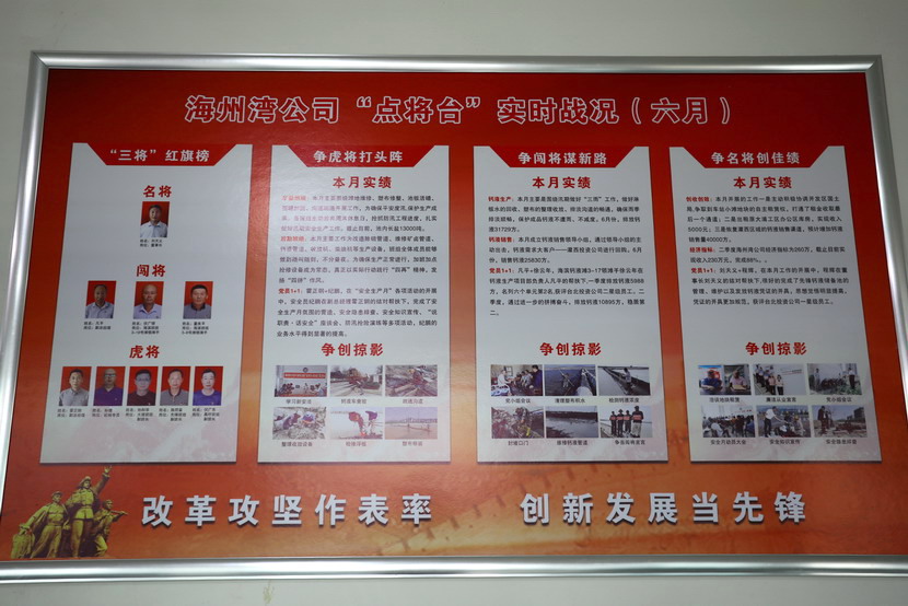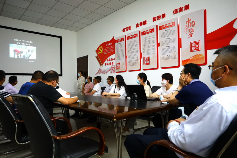 與會人員邊看邊聽講解海州灣黨支部規(guī)范化展板和本月書記項目的落實情況,以及在海州灣黨建活動室觀摩學(xué)習(xí)了上半年黨建基礎(chǔ)臺賬和活動影像。各黨支部就基層黨組織規(guī)范化及書記項目“點將臺”的落實情況作了匯報交流。黨委副書記楊善革針對各支部的黨建工作情況作了詳細的點評,指出各支部黨建工作中存在的不足,并要求各支部立即整改。