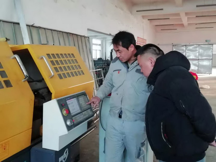▲2021年度星級員工-趙原塵(藍衣)指導(dǎo)新員工操作數(shù)控機床