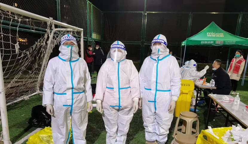 志愿服務篇“現在我們是封控區,不能出去給政府添亂,閑也是閑著,所以社區一招手我們就來了”這是臺北女工委副主任宋文靜的一席話。這波疫情來的突然,緊急核酸檢測緊缺志愿者服務。在公司”戰疫情、爭貢獻“主題實踐活動感召下,她已經在小區擔綱核酸檢測志愿者有兩個夜晚了。而這一幕決不只在海州主城區,在開發區昌圩社區,臺北志愿服務隊已經成為社區防疫主力。疫情伊始,臺北下屬海州灣公司黨支部一班人就已經奮戰在社區防疫一線。黨支部副書記蘇玲、女工胡超,與專業醫護人員一道,穿上厚重防護服,直接站在核酸檢測最前線,這一站就是12小時。值班后稍作休息他們就又聯系總經理霍正鋼,翔立黨支部副書記姜海洋,入黨積極分子朱文健等參與聯防聯控,擔當疫情義務宣傳員。