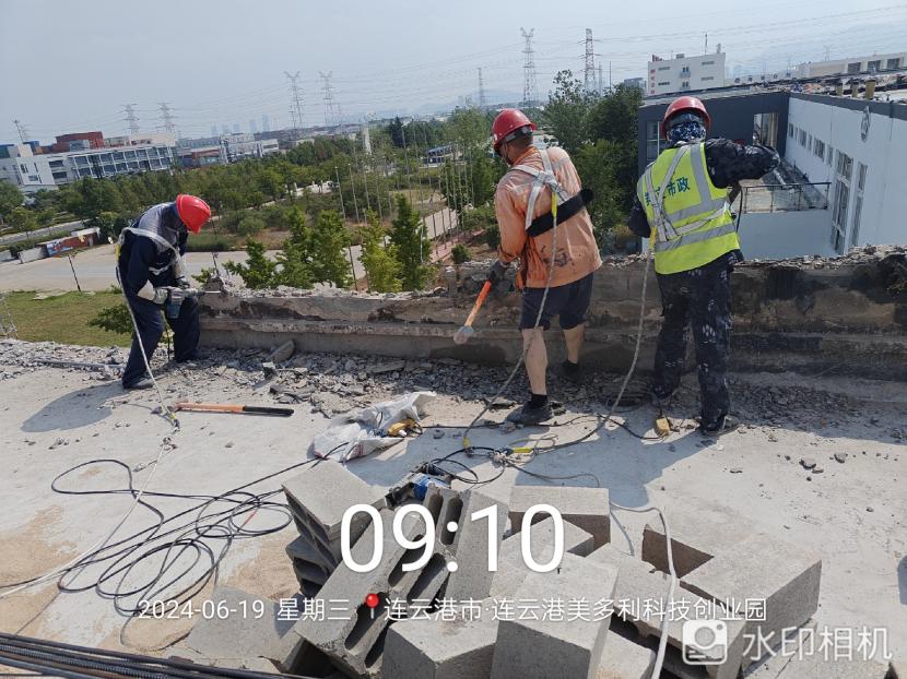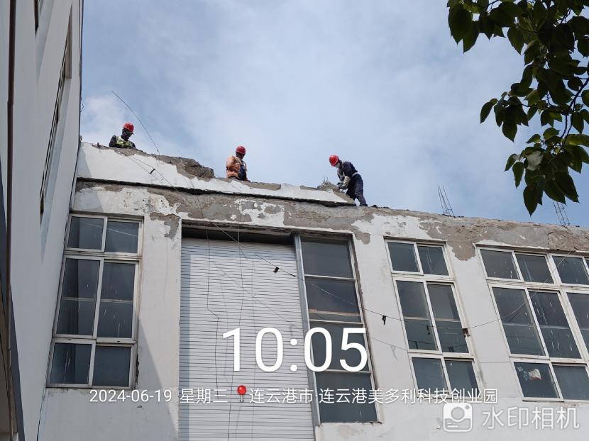 在炎炎夏日的高溫炙烤下,翔立分公司市政班組的工人們仍然堅守在美多利廠房的樓頂,進行著一項重要的安全隱患整治工作——外凸女兒墻的拆除。在這場與高溫和危險的較量中,他們不僅展現了頑強拼搏的精神,更用實際行動詮釋了安全生產的重要性。