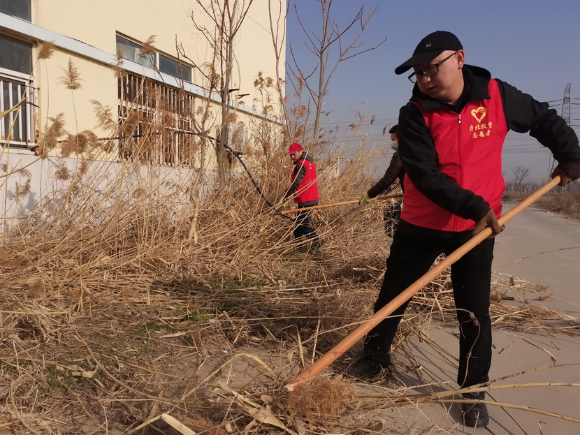 ? ? ? ? 3月4日,按照活動統一安排,志愿者們紛紛抵達各自點位開展統一活動,本次活動主要是清理公司主次干道兩邊的雜草以及各種彩色垃圾。活動中,身著紅色馬甲志愿者分工協作,首先由男同志們對周邊的蘆葦、鹽薅進行地毯式收割,大家揮動著鐮刀、鐵锨,干的十分起勁,顧不得漫天飛舞的蘆葦花和灰塵。女同志們負責用釘耙將割下的雜草以及死角里的彩色垃圾,摟到一起便于集中清理。在勞動過程中大家互相幫助、互相合作,很好的展現了集體的團結協作精神,有的同志手不小心被木板上的釘子劃傷了,擦干凈血接著干。經過2個小時的清理,主次干道煥然一新。