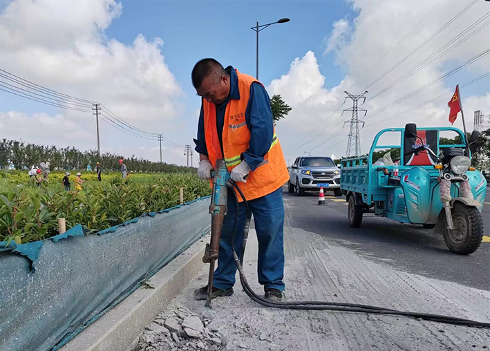 該分公司道路保潔緊扣徐圩城建與悅升公司考核細(xì)則,立足實(shí)際制定適合業(yè)務(wù)發(fā)展相關(guān)保潔制度與標(biāo)準(zhǔn),延續(xù)拓展繼徐新路,上海路,南京路、徐圩大道原優(yōu)質(zhì)道路之外的,石化園區(qū)樣板路延伸工程。近一個(gè)月以來,園區(qū)兩個(gè)班組近35名保潔員工,齊心合力,步調(diào)一致,恪盡堅(jiān)守道路一線。黨員生產(chǎn)骨干陳小軍、薛明柱、朱海勇等同志示范引領(lǐng)有力得以彰顯,每天加班加點(diǎn),累了路邊草地上休息,盡管汗水濕透橙色衣衫,仍然忙碌于道路兩側(cè)。全體員工無懼熾熱陽光照曬,清掃人行道上的泥土、樹葉,石子近5000多米長,打包裝運(yùn)路邊雜物達(dá)800多袋,清理雜草50多處。安全序時(shí)推進(jìn)路障大排查。面對路面上凝固的混凝土塊,大家舉起鐵錘不斷振動敲打,150米長的柏油路面恢復(fù)往日的干凈、整潔。在他們的共同努力下,園區(qū)的樣板路創(chuàng)建已形成規(guī)模。下一步,保潔分公司將定期將加大巡查與考核力度,發(fā)現(xiàn)問題立即整改,為成功完成園區(qū)各類重大活動保障工作打下堅(jiān)實(shí)品質(zhì)根基。(楊波)