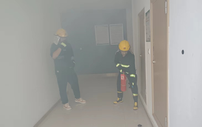 本次演練模擬公司辦公樓三樓電纜井因電路故障引發火情組織職工開展應急疏散。“起火啦!”15時許,辦公樓三樓一電纜井內突然涌出滾滾濃煙。臨近人員發現著火后,第一時間使用滅火器進行撲救。濃煙觸發自動報警裝置,消防控制室值班人員接到警報后,立即通知志愿消防隊伍趕赴現場撲救,并撥打報警電話,向應急指揮部報告。公司應急指揮部立即啟動應急預案,滅火搶救組、安全救護組、緊急疏散組等應急小組隨即到位,有條不紊開展滅火、疏散等工作。消防救援隊伍到達現場后,接過現場指揮權,開展滅火救援。安全搶救組搜索受傷人員,并對受傷人員簡單急救后送往醫院進行治療,緊急疏散組立即組織辦公大樓人員,用濕毛巾捂住口鼻從應急通道撤離。10分鐘后,險情排除,應急救援結束。最后,組織部分人員開展滅火實操演練